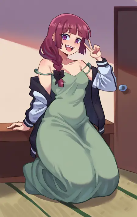 | 학습된 단어 | hiroikikuriSDXL,hiroi kikuri, single braid,hair over shoulder,hair bow,black bow,purple eyes,long dress,green dress,strap slip,jacket,open jacket,two-tone jacket복사됨! hiroikikuriSDXL,hiroi kikuri,single braid,hair over shoulder,hair bow,black bow,purple eyes,long dress,green dress,strap slip복사됨! |