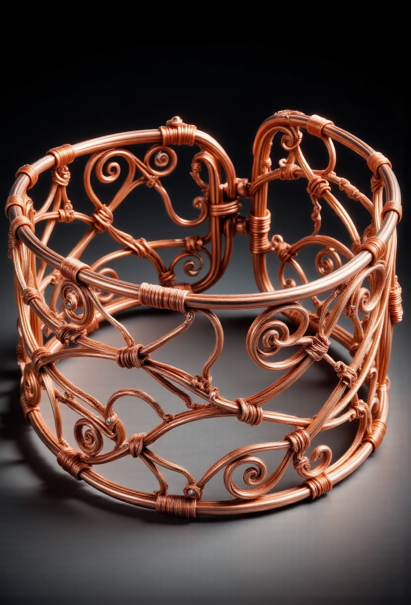 構図とスタイル: 抽象的な形態、建築的要素、装飾的オブジェクトなど、銅の優雅さと洗練を際立たせる画像の構成に優れています。