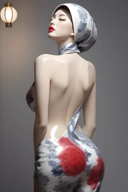 realistic, photorealistic, indoors, red lantern, <lora: ceramic beauty v1.0_trigger word: porcelain_girl:0.9>