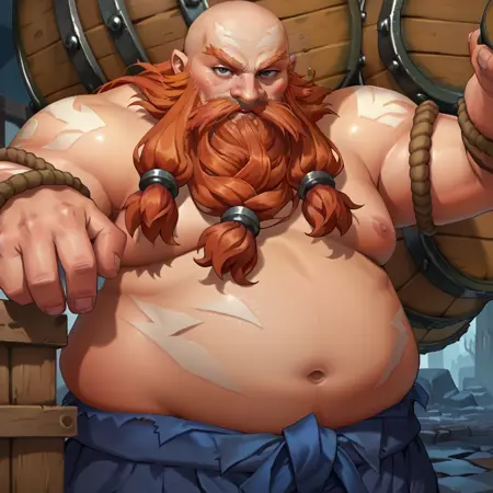 더 정확하게 하려면: (대머리), 주황색 머리카락, 매우 긴 수염, 매우 긴 콧수염,