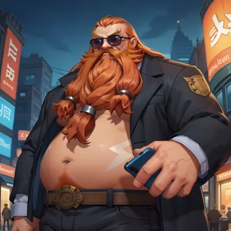より正確にするには:(bald), orange hair, very long mustache, very long beard,