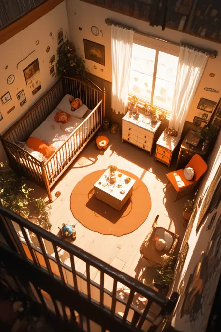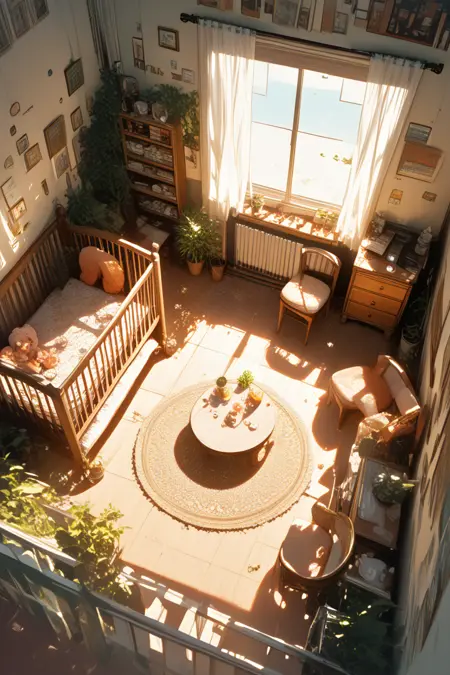 リビングルーム = リビングルームに焦点、CandiLR、上方から、負の空間