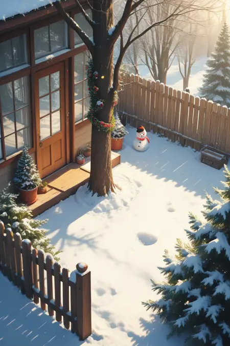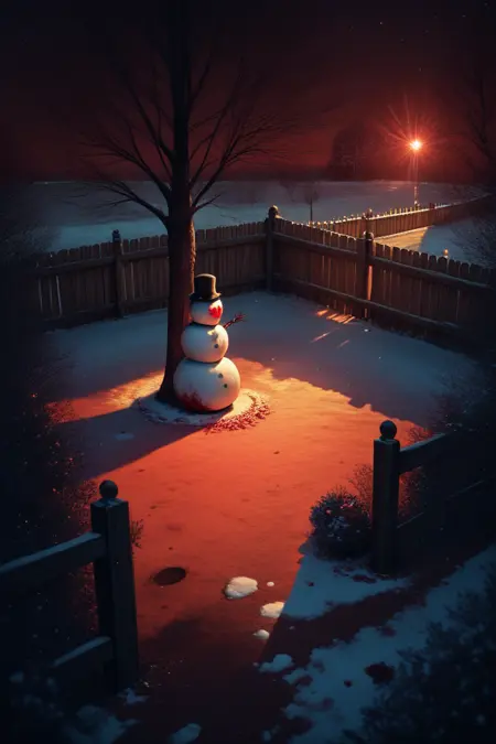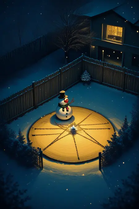 Snowman's yard = snowman-front yard focus, DaSFY, negative space, from above,