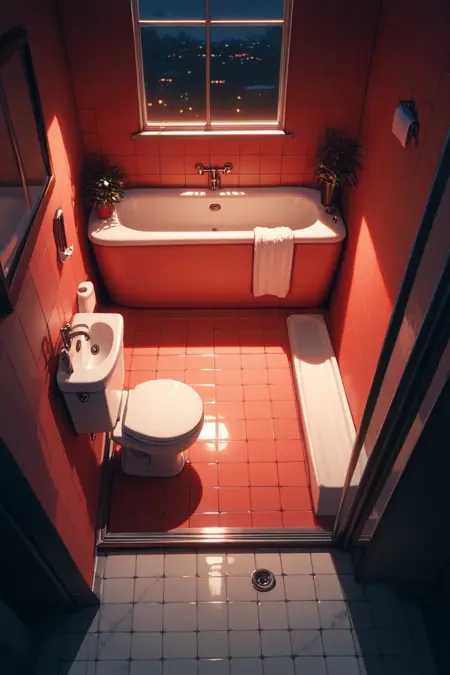 浴室 = 浴室に焦点、Candibath、上方から、負の空間、