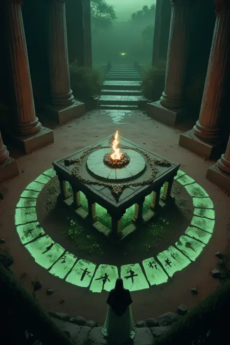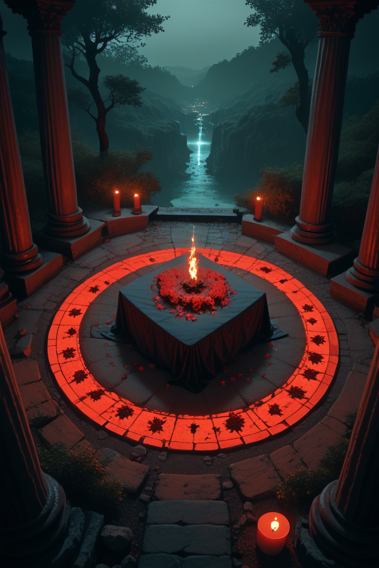 ritual site = Ritual site focus, CandiRS, from above, negative space,