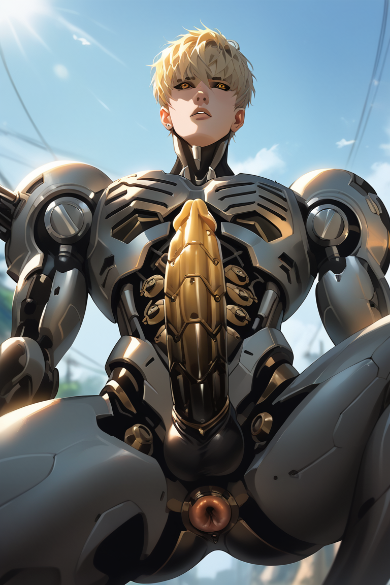 Pair = interspecies gay couple focus, saitama (one-punch man), 1boy, GenosOPM, 1cyborg-male