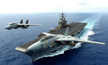 格鲁曼F-14“雄猫”是一款美国舰载超音速、双发、双座、双尾翼、全天候可变后掠翼战斗机。雄猫是在通用动力-格鲁曼F-111B项目失败后,为美国海军的舰载战斗机实验(VFX)计划开发的。F-14是一款庞大且装备精良的战斗机,是美国“青少年系列”战斗机中的首款,该系列战斗机的设计融合了越南战争期间与米格战斗机空战的经验。