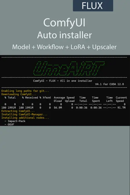 私が作成したインストールスクリプトを共有します。このスクリプトはComfyUI、ワークフロー、FLUXモデルなどを自動的に設定します。