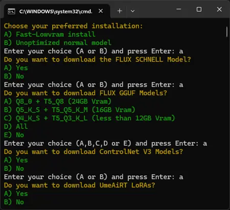스크립트 시작 시 몇 가지 질문에 답하면, 원하는 요소만 다운로드됩니다.