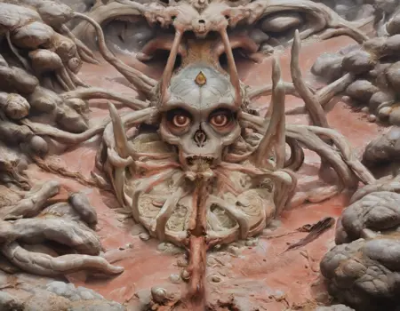 _mapcraft, battle map, top-down view, from above, no humans, highly detailed, exterior, ruined desert temple, rocky cliffs, scattered bones