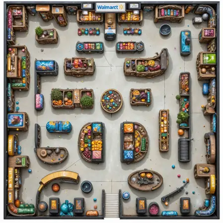 Fluxでは、mapcraftトリガーを自然言語で使用してください。レイアウト、設定、雰囲気をトップダウン視点から明確に記述してください。
