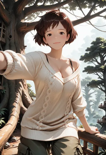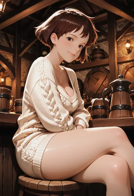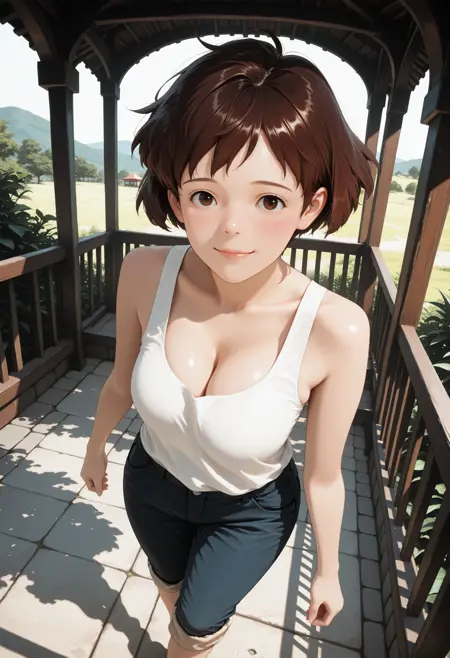 (긍정적 프롬프트) kiki, kiki (majo no takkyuubin), 단발, 갈색 머리, 갈색 눈,