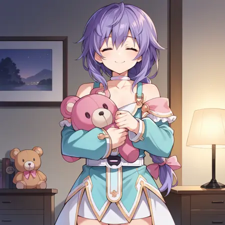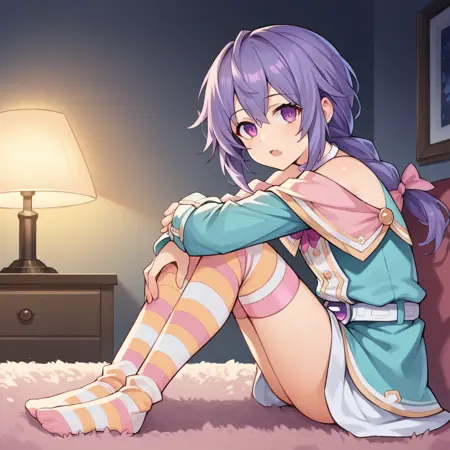 PlutNep, Fol001, Plt_Def, 긴 머리, 연보라 머리, 보라색 눈, 땋은 토끼 꼬리, 분홍색 리본, 머리 리본, pururut, 스트랩 드레스, 아쿠아 드레스, 어깨 스트랩, 분홍 리본, 분리된 소매, 퍼프 긴 소매, 아쿠아 소매, 넓은 소매, 노란 테두리, 흰색 벨트, 손목을 넘어가는 소매, 드레스 아래 치마, 흰색 오픈 스커트, 단추, 흰색 초커, 관자놀이, 허리 베일, 줄무늬 허벅지 양말, 다색 허벅지 양말, 분홍 허벅지 양말, 노란 허벅지 양말, 흰색 허벅지 양말, 동물 모양 슬리퍼, 분홍 신발,