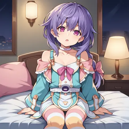 PlutNep, Plutia, 编发马尾, 紫色头发, 紫色眼睛,