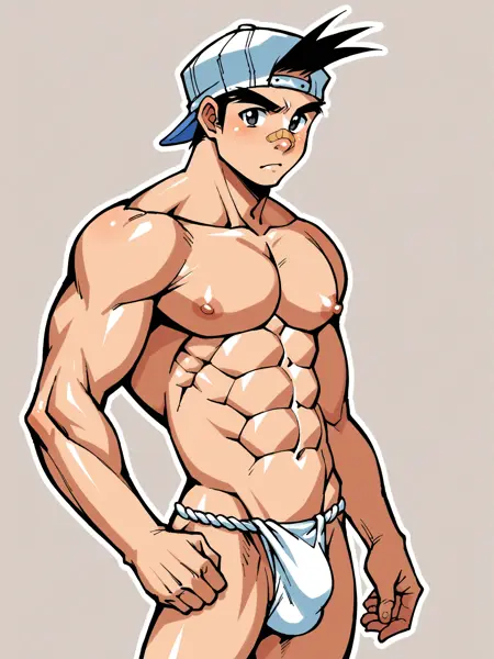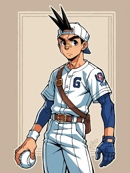 Shoma Sawamura from Rival Schools. Trigger word is [sh0m4]. Easy enough so I don't screw it up. =^.^= You may want to add [baseball bat] to negatives to avoid a wacky melee weapon, and other helpful tags include [bandaid on nose, backwards cap, baseball uniform].
