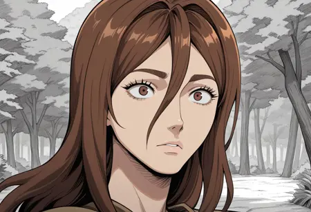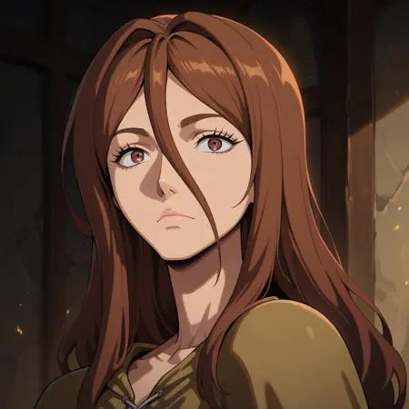 Luca-Berserk-IL.V1.2, brown hair, brown eyes, long hair, hair between eyes,