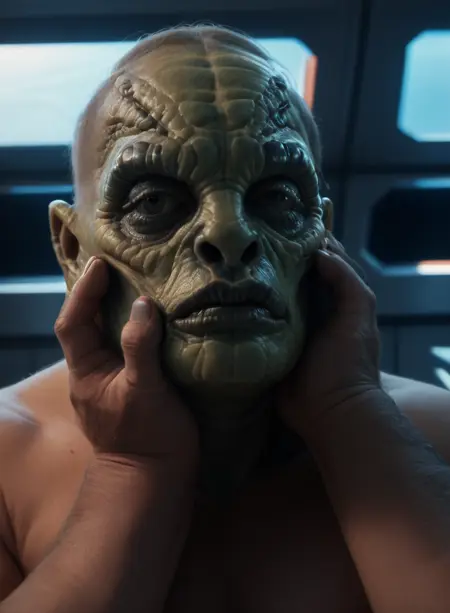 피부 탈피/바디수트 변형 모델의 첫 시도. 어설픈 고무 마스크에서부터 전신 공포까지 다양함. 주로 남성 대상을 기반으로 학습됨. 일반적으로 Stable Diffusion은 "마스크"와 "바디수트"라는 단어에 매우 유연하지 않으며, 대신 의료용 마스크와 다이빙 수트를 생성하기 때문에 이 모델에는 이러한 단어들이 별로 유용하지 않음.
