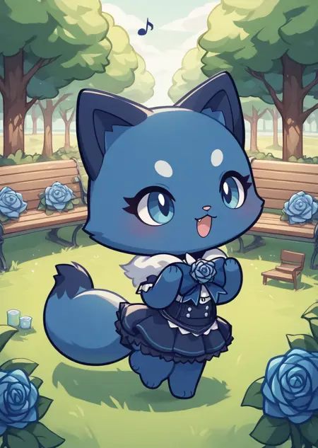 提示词:adorozatorumary、Q版、兽人、颈饰、眼下痣、蓝色毛发