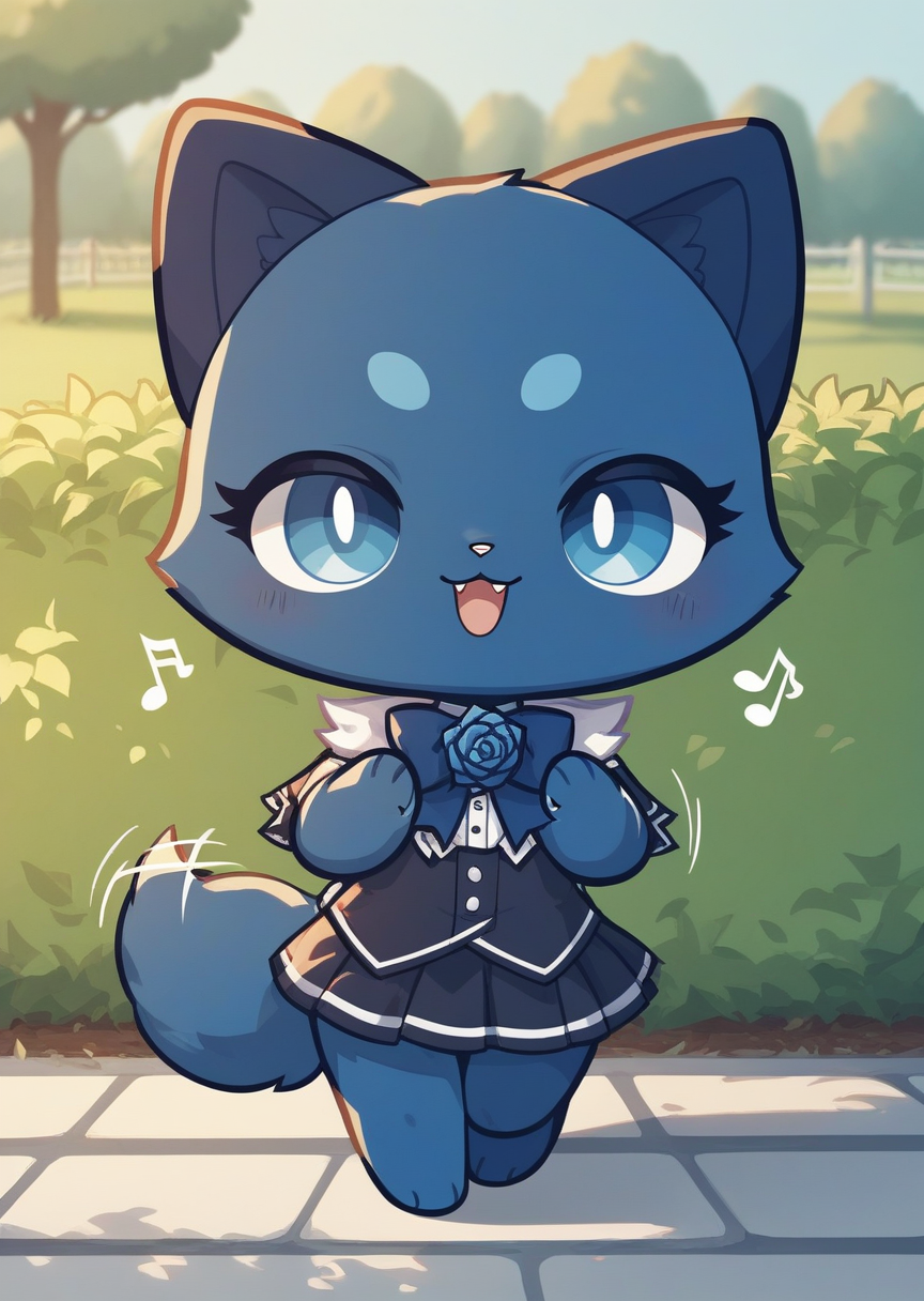 Prompts: adorozatorumary, chibi, furry, neck accessory, mole under eye, blue fur