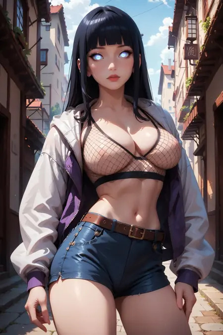 衣装トリガー:cleavage, fishnet top, short shorts, jacket, hood, belt