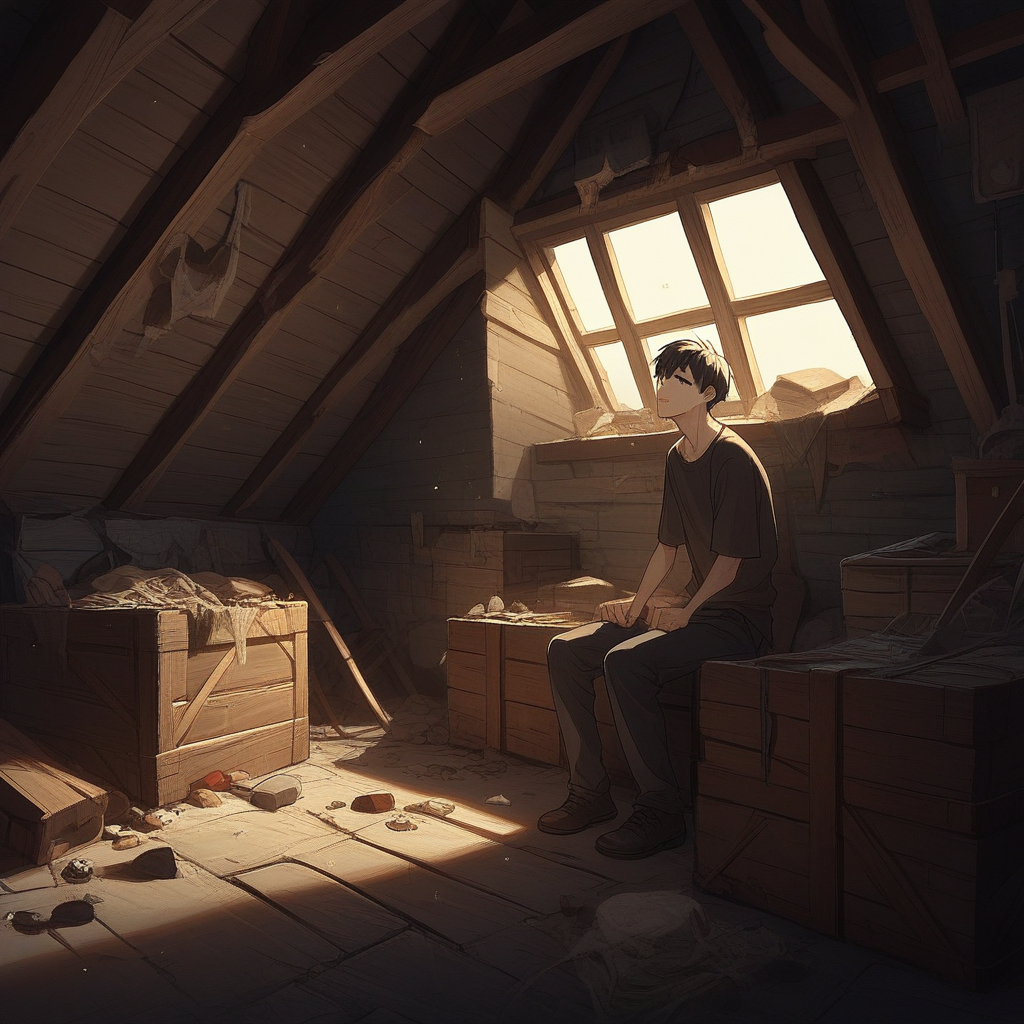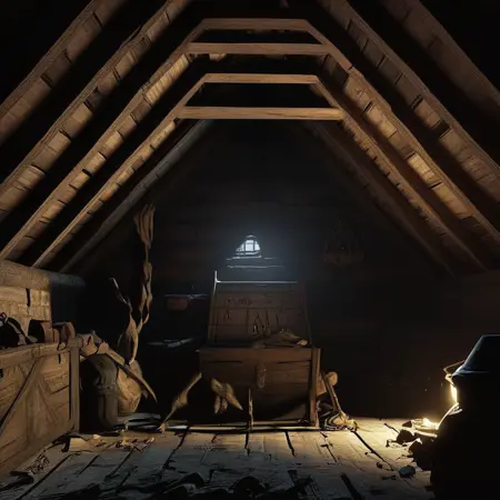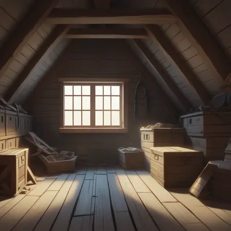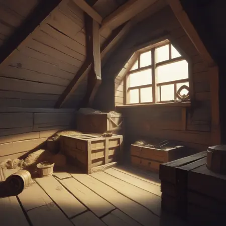 オプション:屋根裏、傾斜した屋根、室内、窓、木製の床