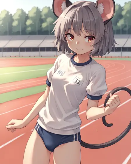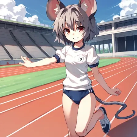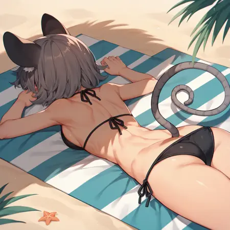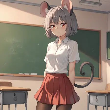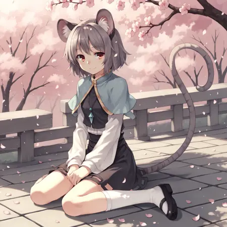 Nazrinは、東方プロジェクトシリーズに登場するネズミの妖精です。デフォルトでは赤オレンジ色の目、灰色の髪、内側に曲がったピンクがかった内側のネズミの耳を持たせるように訓練されていますので、これらをプロンプトで指定する必要はありません。ただし、特定のアーティストの解釈に合わせて、茶色の髪や紫色の目など、好みに応じて簡単にプロンプトで指定できます。