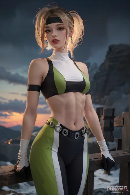 이 캐릭터는 '매터널 컴뱃 3'의 소니아 블레이드입니다. 어릴 때 FC 시절부터 정말 좋아했어요. 직접 만들어봤는데, 괜찮은 것 같아요, 헤헤.