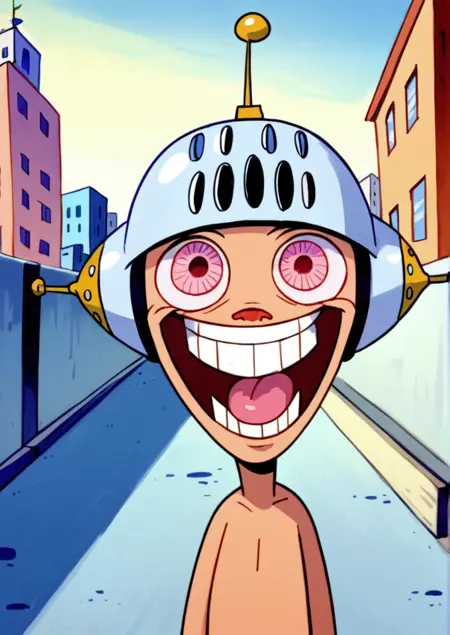 レーンはまた:'wearing happy helmet'(『スティンピーの発明』エピソードより)