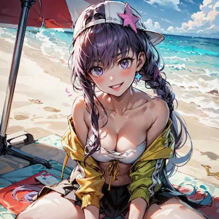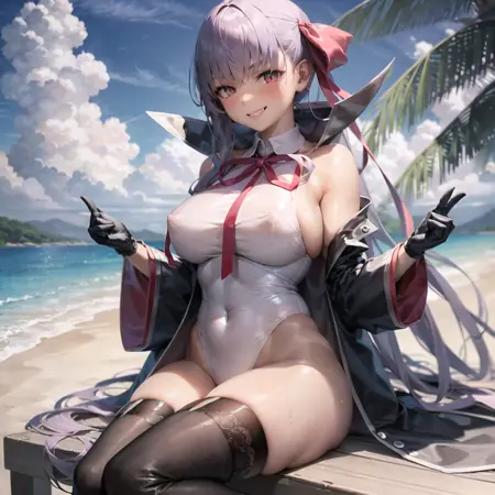 泳装形态第二次进化:bb,1girl,sec_asc_lulu,tan,red_eyes(tan和red_eyes为可选)