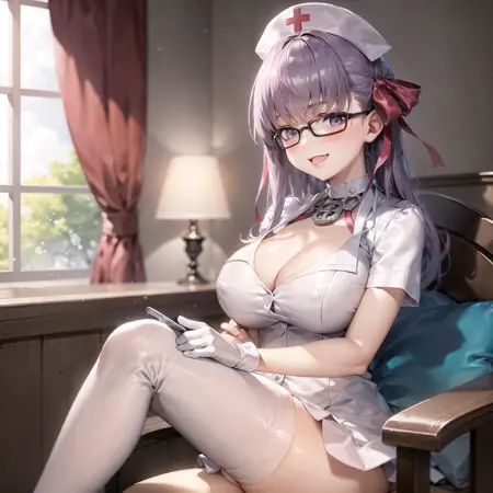 护士形态:bb,1girl,nrs,glasses,syringe(syringe和glasses为可选)