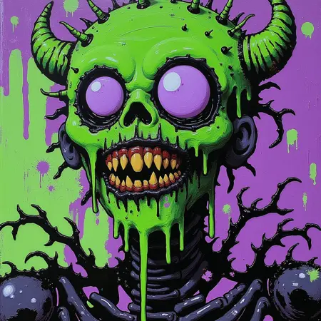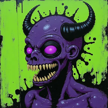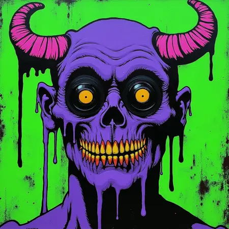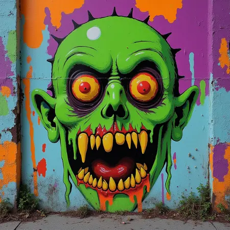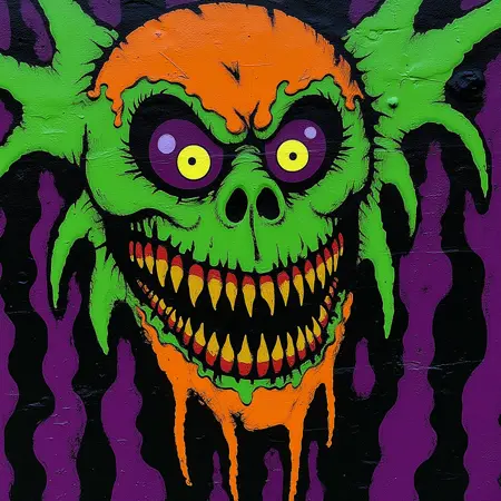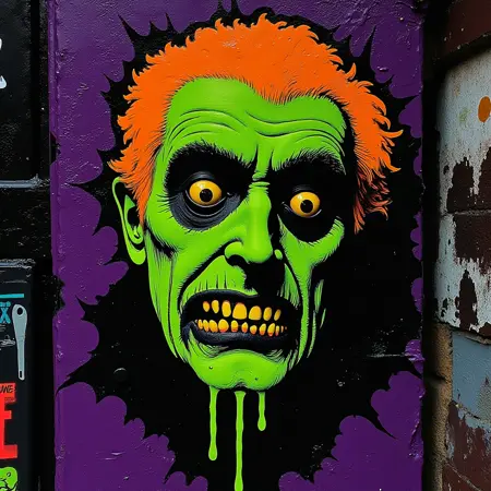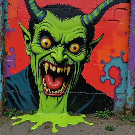 디바 바 외부에서 볼 법한 흐르고 더러운 공포 테마의 거리 예술.