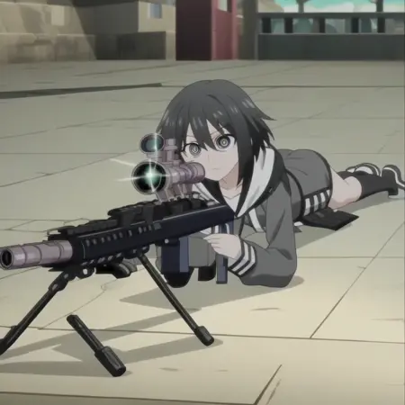 模型专注于生成狙击手卧倒在地面上瞄准的图像。