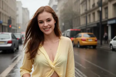 超真实的 GoPro 动作照片,一位美丽的 20 岁荷兰女孩,胸部小巧(看向镜头:1.3),风大,穿着破旧、磨损、撕裂的衣服,身处主题公园,模拟胶片风格,杰作,露出胸部