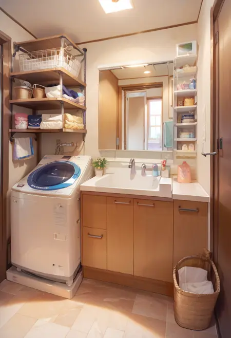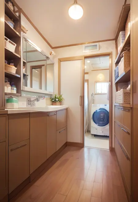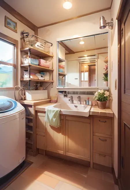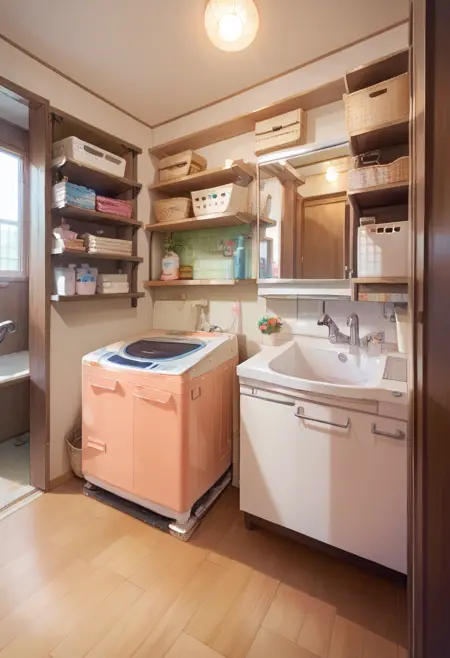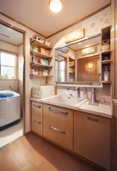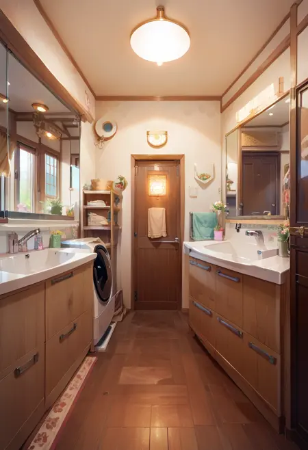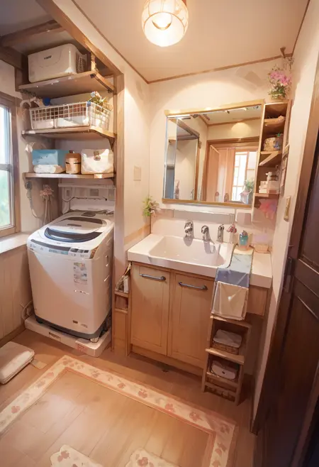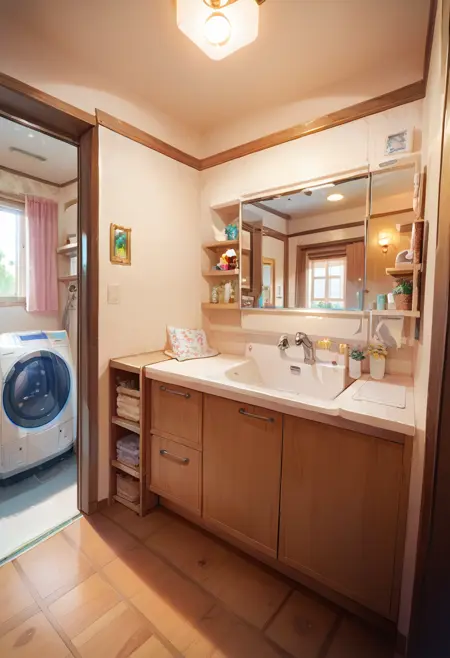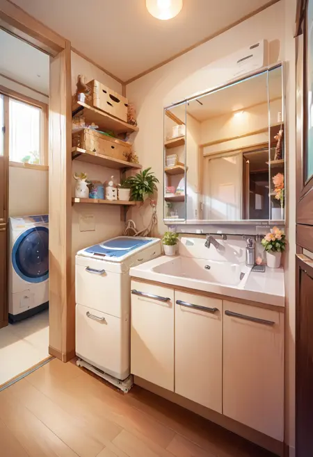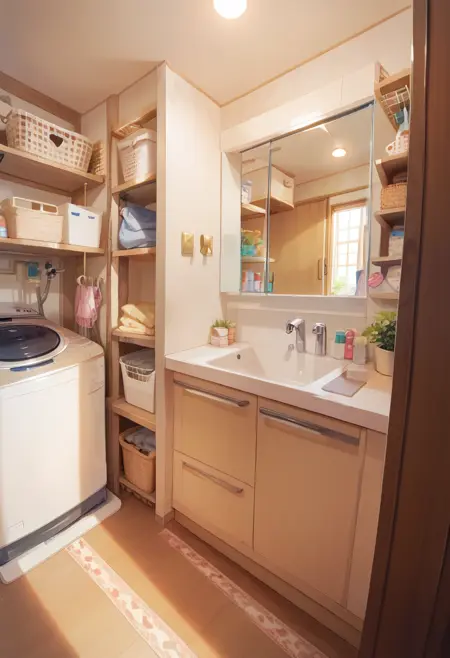 これは日本の住宅でよく見かける洗面所の風景をもしかすると描けるかもしれないLoRAです。