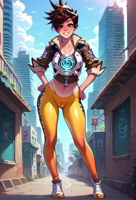 This Lora allows you to generate Tracer without those nasty glasses. However, you have to be careful when generating images - if you give a prompt such as “Tracer clothes” it may still pop up sometimes.