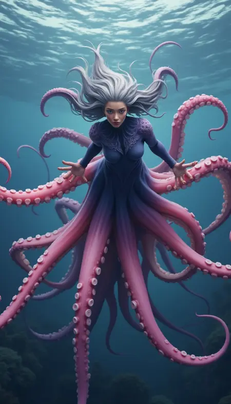 Skin, hair and colour of the tentacles can be changed. See example images for example prompts.