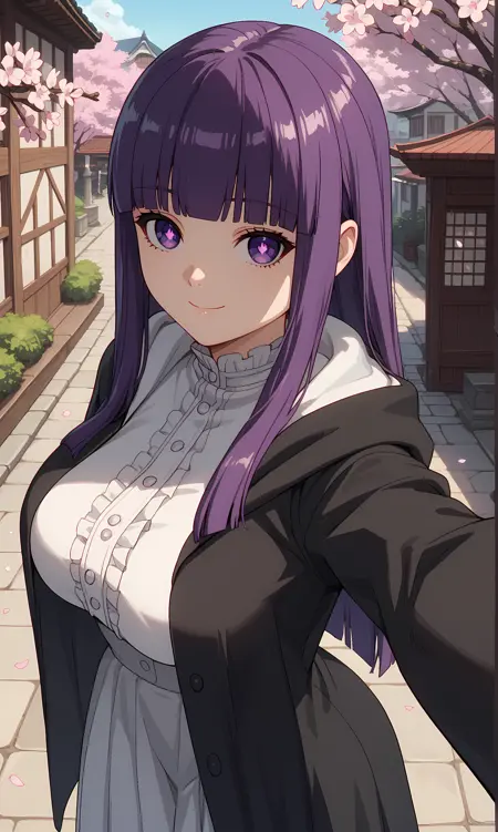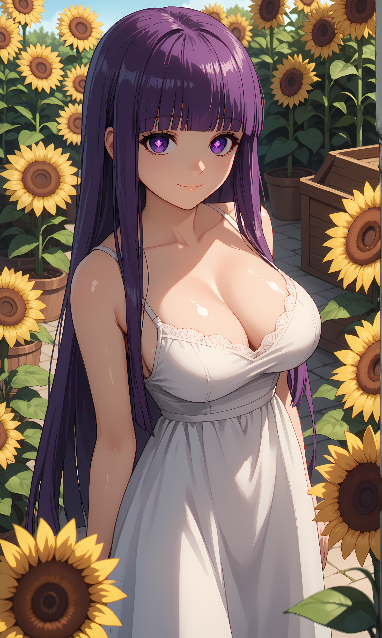 蕨类植物,紫色眼睛,明亮的瞳孔,白色瞳孔,紫色头发,长发,齐刘海,姬发式,侧发
