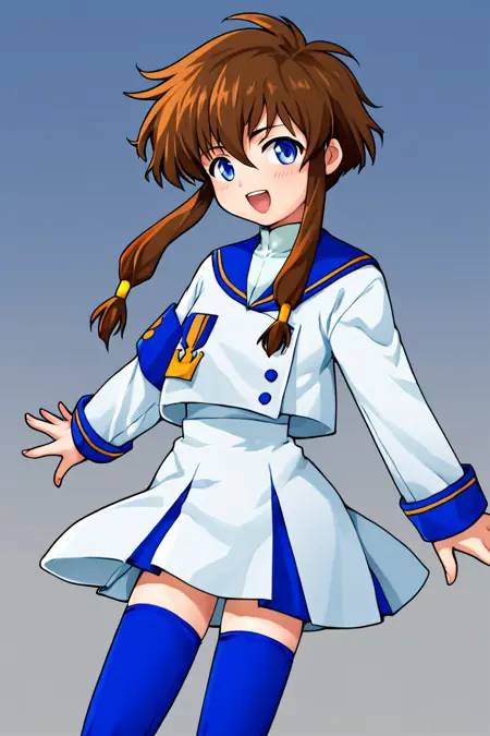 misakisuzuhara, 1个女孩, 单人, 短发, 蓝眼睛, 棕色头发, 过膝袜, 校服, 侧发, 绝对领域, 蓝色过膝袜,
