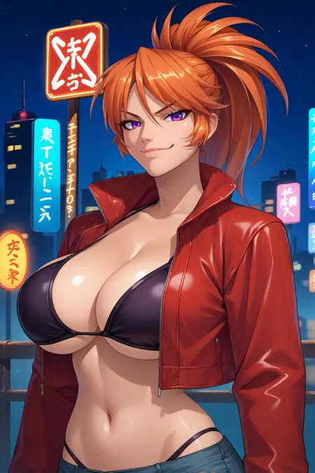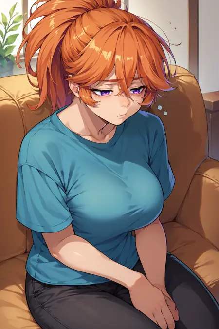 トリガーワードは「taimaAK」、また「オレンジ色の髪、ポニーテール、紫色の目」が必要です。