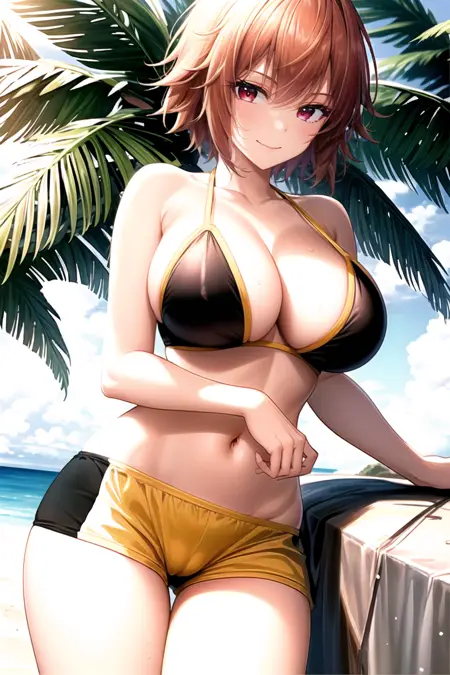 アクティベーションタグ: easy_boyshorts;希望するショーツの種類(バイクショーツ、ビキニショーツ、ドルフィンショーツ、レーストリム付きショーツなど)とともに、 (panties under shorts:1.2), (front-tie top:1.2), denim shorts, side slit shorts, open fly, および open shorts をネガティブプロンプトボックスに記入してください。