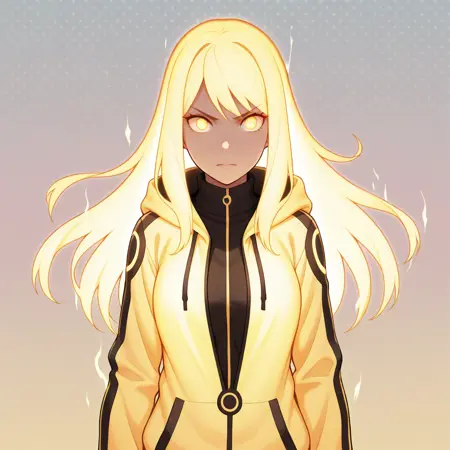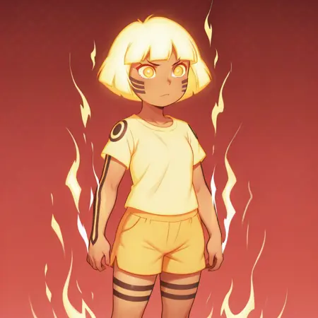 BijuuMode, aura, glowing hair, glowing yellow clothes, yellow hair,