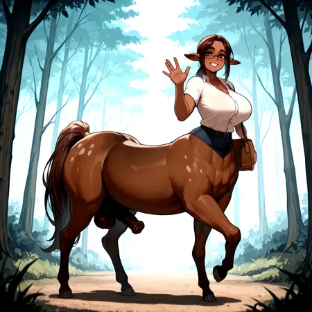 Example Prompt: smile, futanari, solo, centaur, futaur, smile, witch_hat