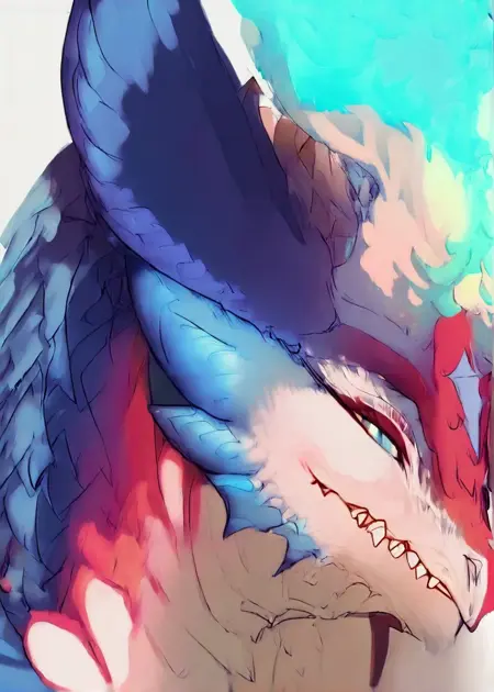 Smolder (The Cub) is mostly red, his mom (Nameless Dragon Female) is mostly blue with some red tint on her face.