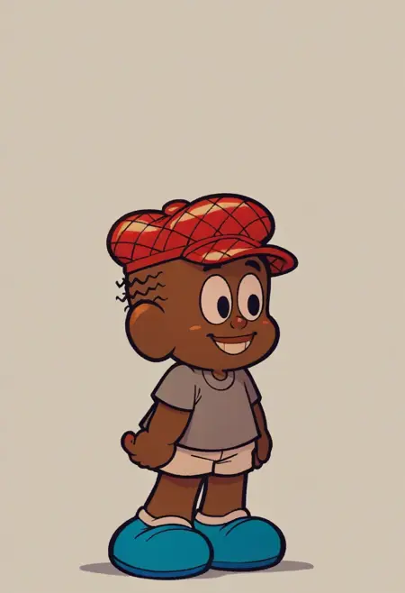 jeremias, shirt, 1boy, hat, short sleeves, shorts, dark skin, black eyes, dark-skinned male, grey shirt, red headwear, blue footwear, white shorts, very dark skin