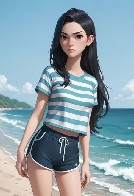 (긍정적 프롬프트) colil, 긴 머리, 검은 머리, 검은 눈