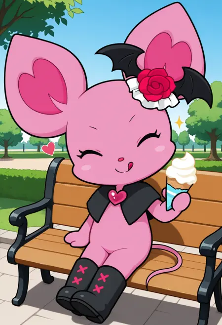 프롬프트: devi, 부츠, 꼬리, 케이프렛, 쥐 꼬리, 분홍 털, 치비, 퓨리,