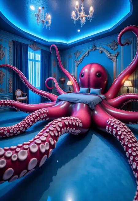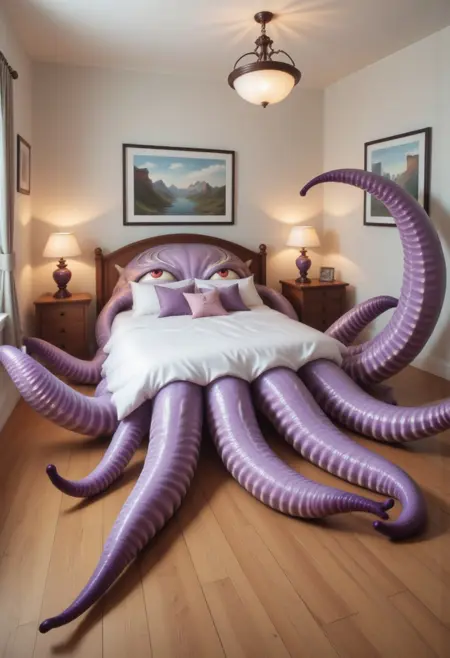 注:これは、非常に洗練されたテーマで一貫性をテストしただけのものだが、楽しいし、不動産業者が偽のベッドルームで物件を彩るのに使えるかもしれない。