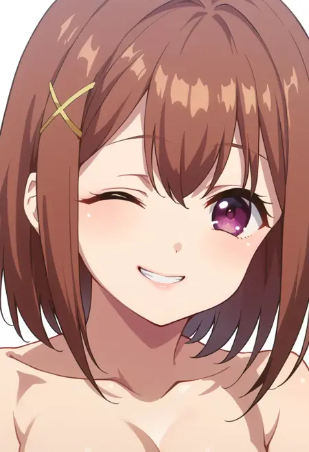 Minimi Nimi, 보라색 눈, 갈색 머리, 단발, 머리 장식, x 머리 장식,