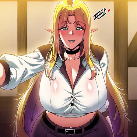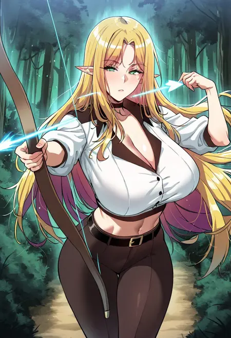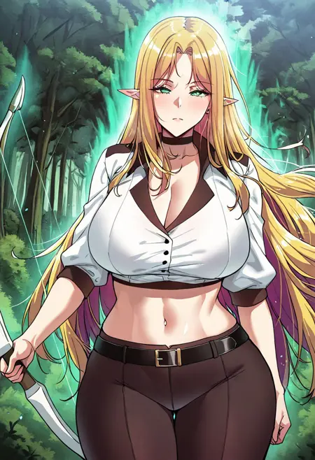 ((lora:requre\_(isekai\_fall\_of\_the\_hero):1、requre_(isekai_fall_of_the_hero)、細いウエスト、広い hip、美しい肌、鋭い緑色の目、明確な目、明るい瞳、美しい目、美しい金髪、美しいロングヘア、巨大でふわふわした胸、とがったエルフの耳、自然な美しさ、並外れて美しいエルフの女性、魅力的なエルフの女性、超セクシーなエルフの女性、欲望に満ちた体、誘惑的で露骨な体を持つセクシーなエルフの女性、官能的な体、豊かな体、セクシーなエルフの美しさ、ピアスなし、ピアスなし))