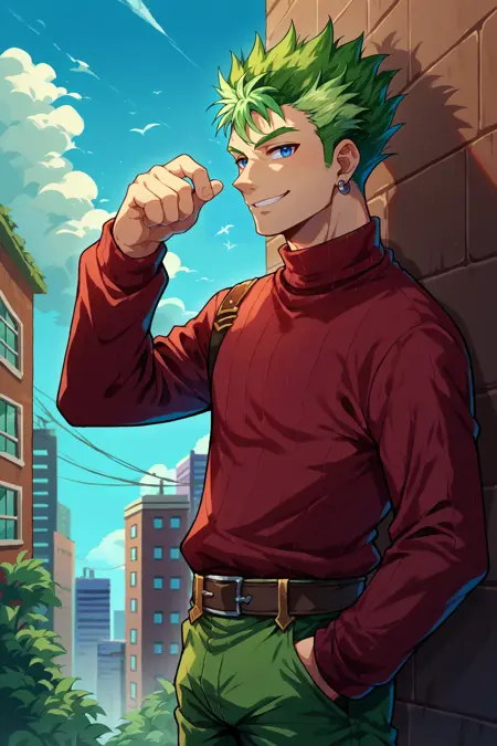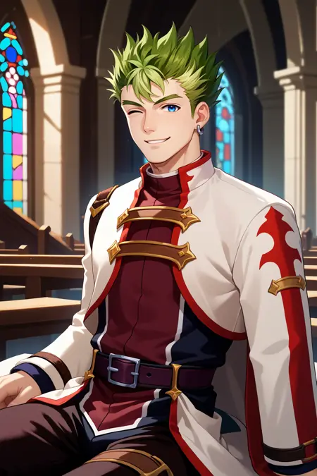 来自《空之轨迹》的凯文·格拉汉姆。使用 Pony Diffusion V6 XL 训练。测试强度为 0.8-1.0。